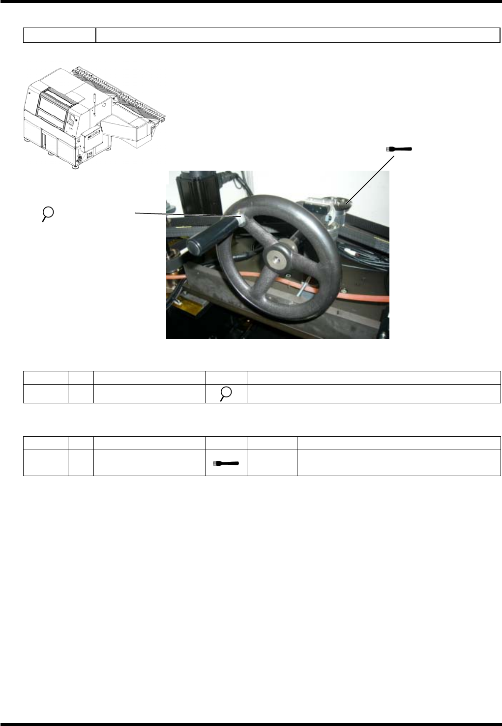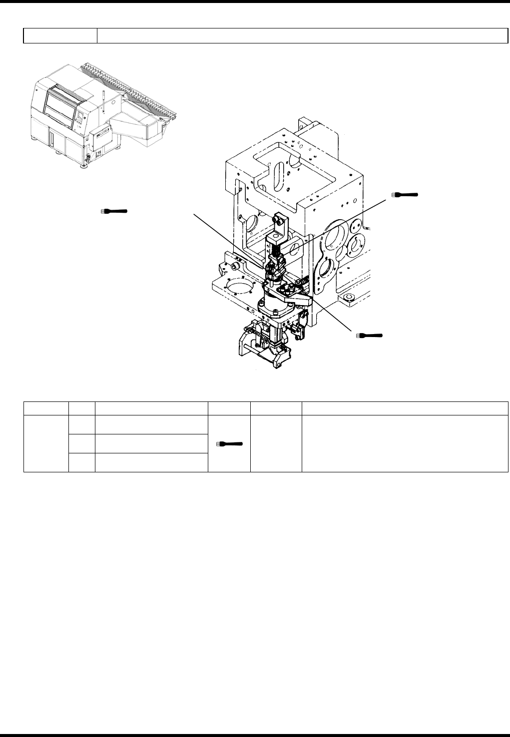 RL132 维修手册 7.4 插件头 DA9MCC-Z1-M00-A 0 7.4-9 7.4.6 主驱动部 装置编号 N610070013AA 检查 周期 No. 项目 作业 详细内容 每周 a. 手动旋转轮 确保齿轮旋转平稳。 加油 周期 No. 项目 作业 加油量 详细内容 3 个月 1. 齿轮面 0.5 cm 3 彻底擦净粘付在表面上的灰尘后, 在齿轮 的咬 合部位薄薄地涂上润滑脂。 1. 齿轮面 a. 手动旋转轮