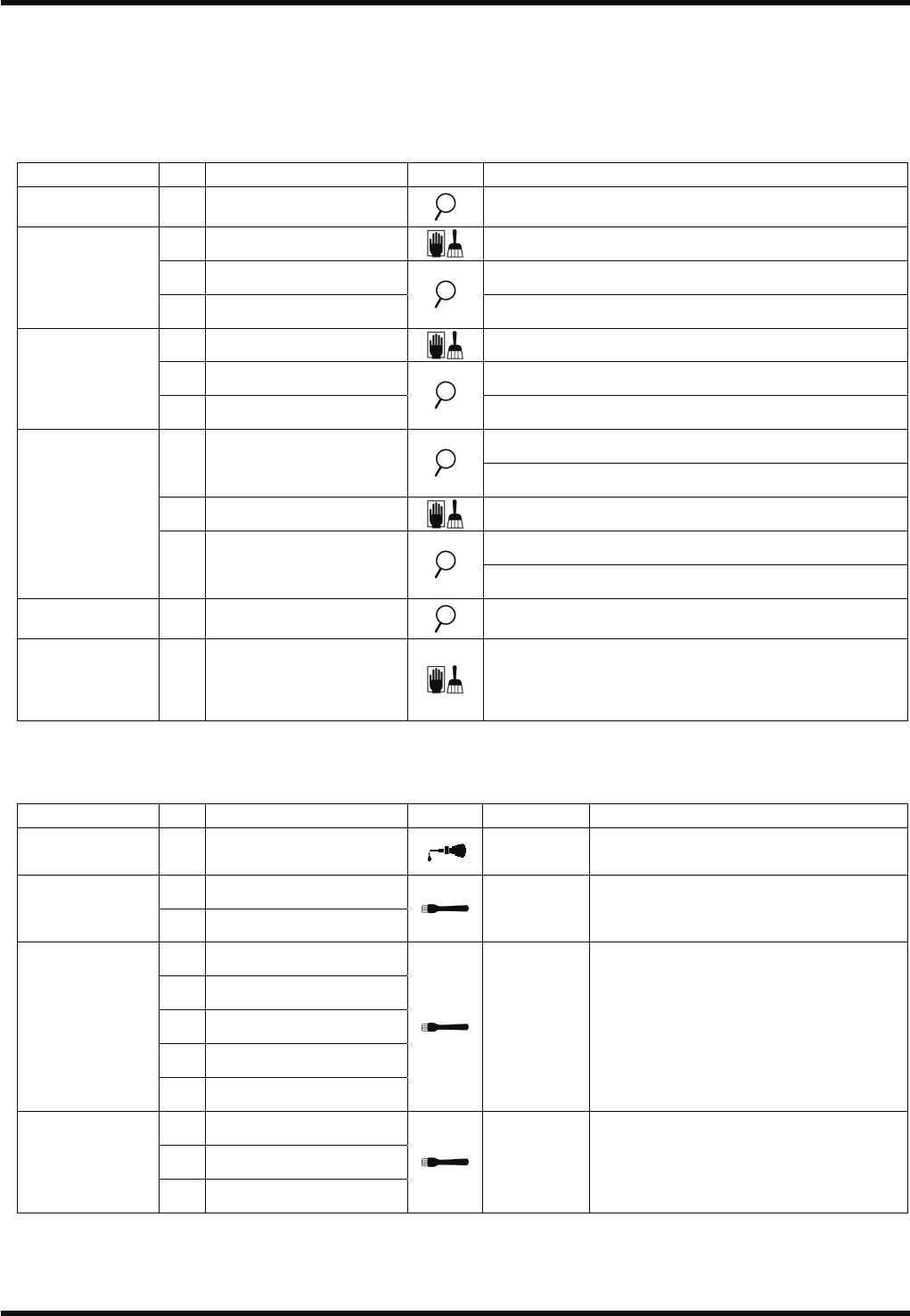 RL132 维修手册 7.2 不同周期的检查项目 DA9MCC-Z0-020-A0 7.2-2 装置 No. 项目 作业 详细内容 对引线切刀端部用刷子等进行清扫, 除去切割屑等。 引线切刀应无油渍、灰尘的粘付。 a. 引线切刀 引线切刀应无磨损、无损坏。 b. 引线切刀杆 引线切刀杆的开闭应顺畅。 c. 传感器 擦净传感器端部的灰尘等污垢。 对引线切刀端部用刷子等进行清扫, 除去切割屑等。 7.6.3 V 切割部 d. 引线导板 引线…