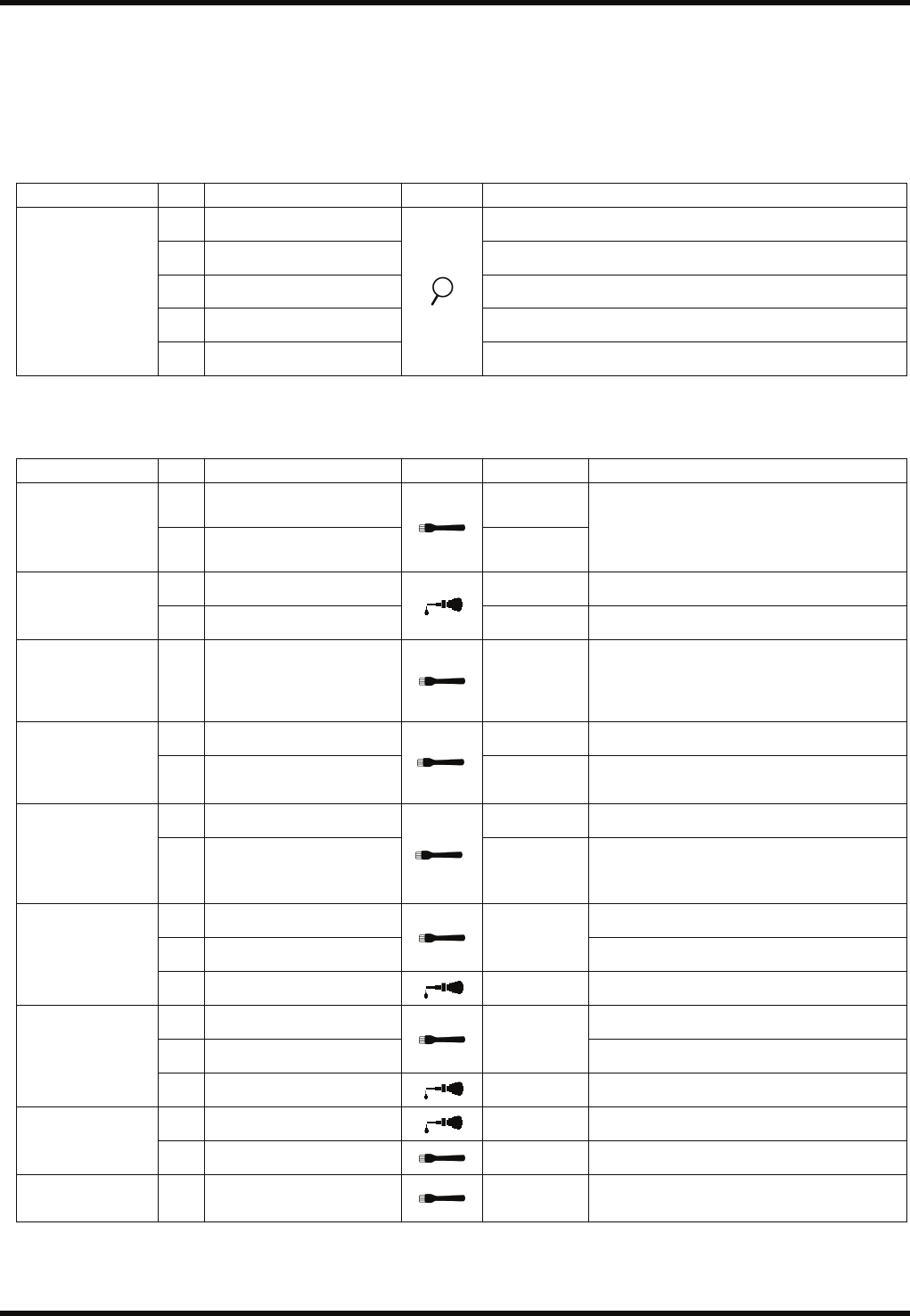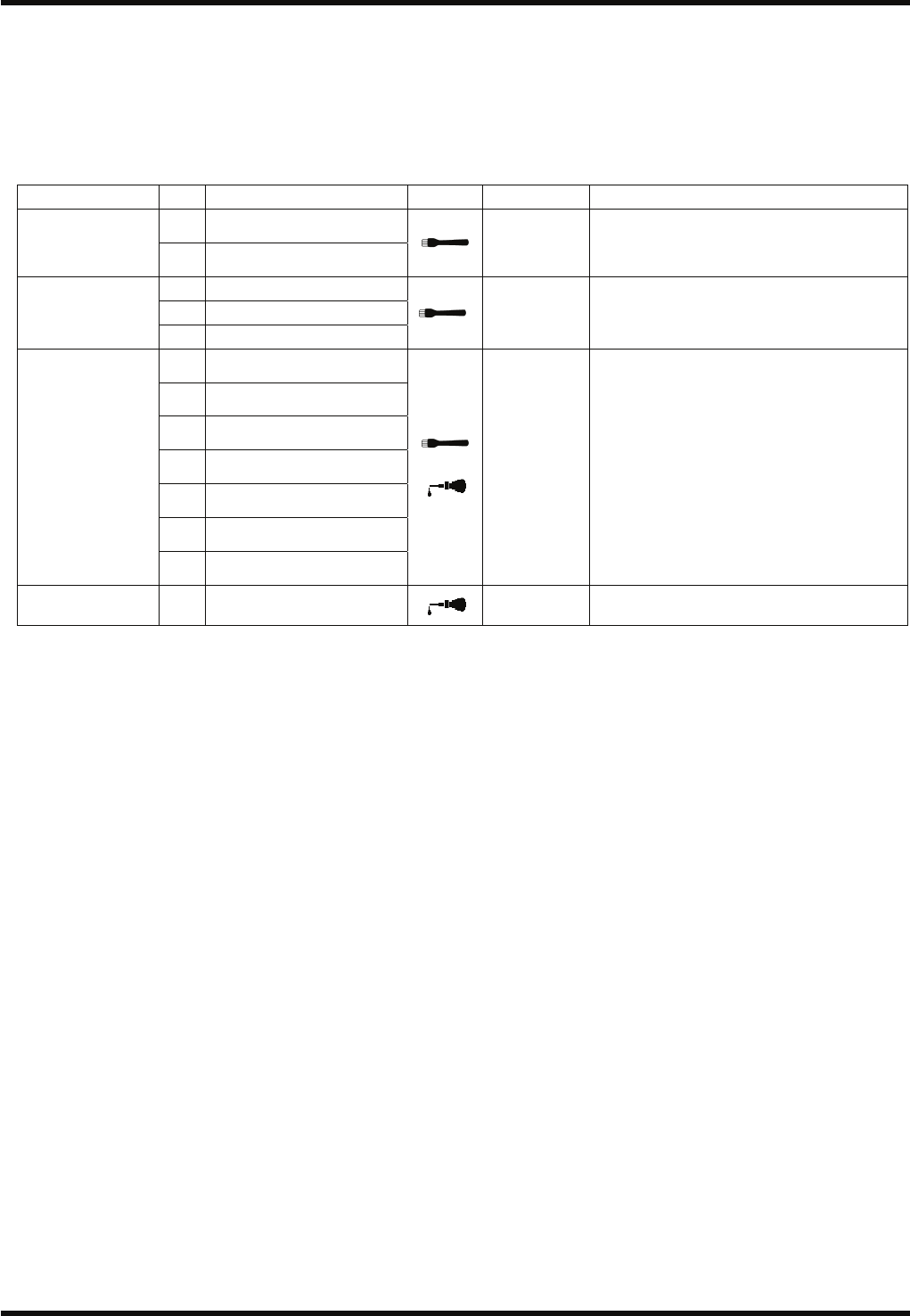 RL132 维修手册 7.2 不同周期的检查项目 DA9MCC-Z0-020-A0 7.2-6 7.2.4 每 3 个月的检查项目 这里将本章所涉及的检查项目中要求 每 3 个月进行 检查的项目汇总如下: 检查位置及加油的详细内容请参照本 章。 装置栏的数字表示供参考的项目号码 。 检查 (3 个月 ) 装置 No. 项目 作业 详细内容 a. 全体 没有从真空泵发出的异常音 b. 过滤器部件 无孔眼堵塞、无脏污 c. 橡胶垫片 无…