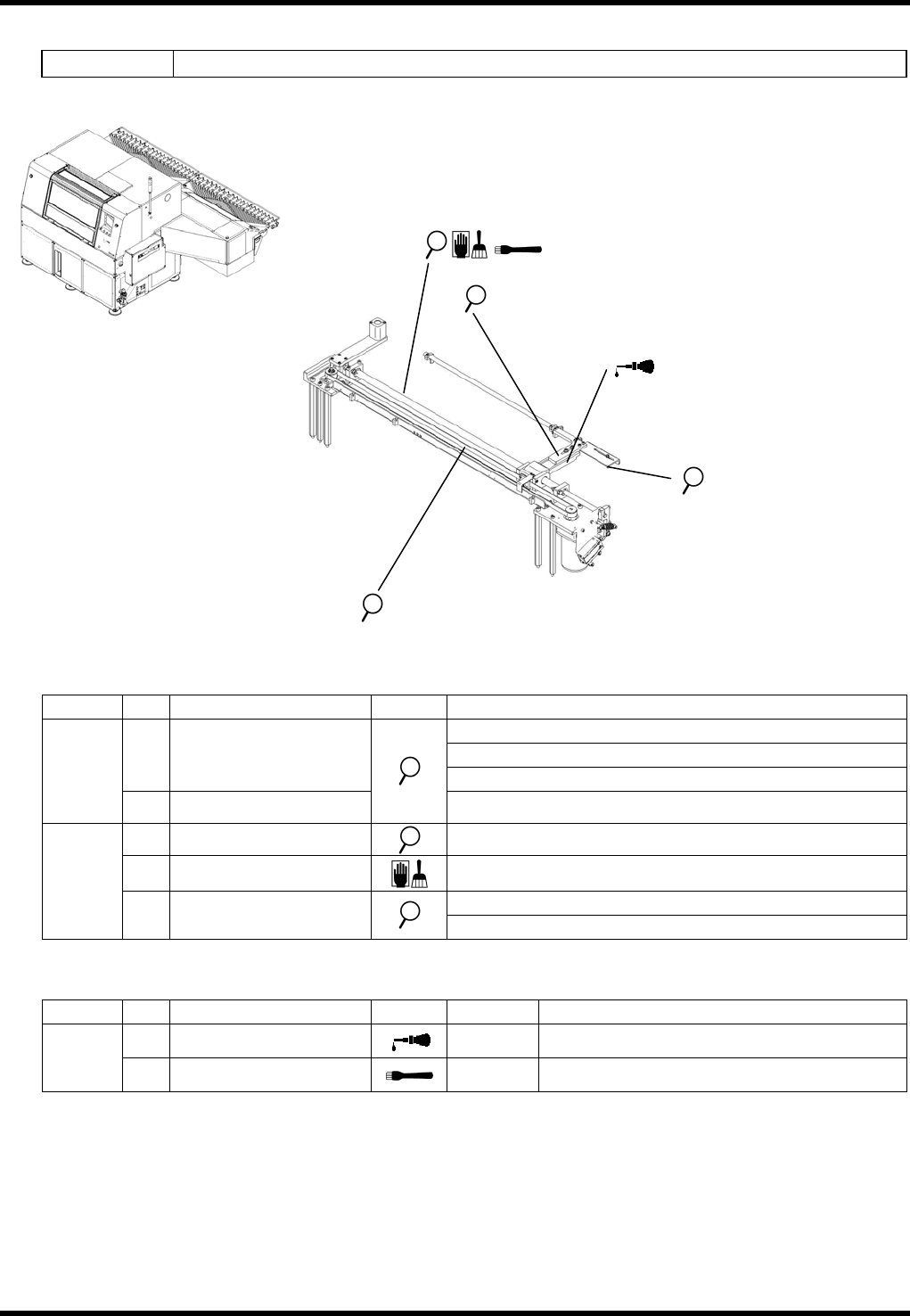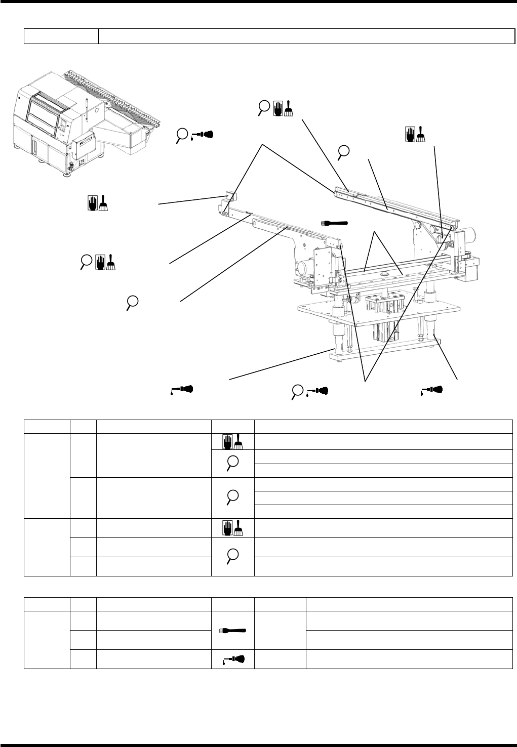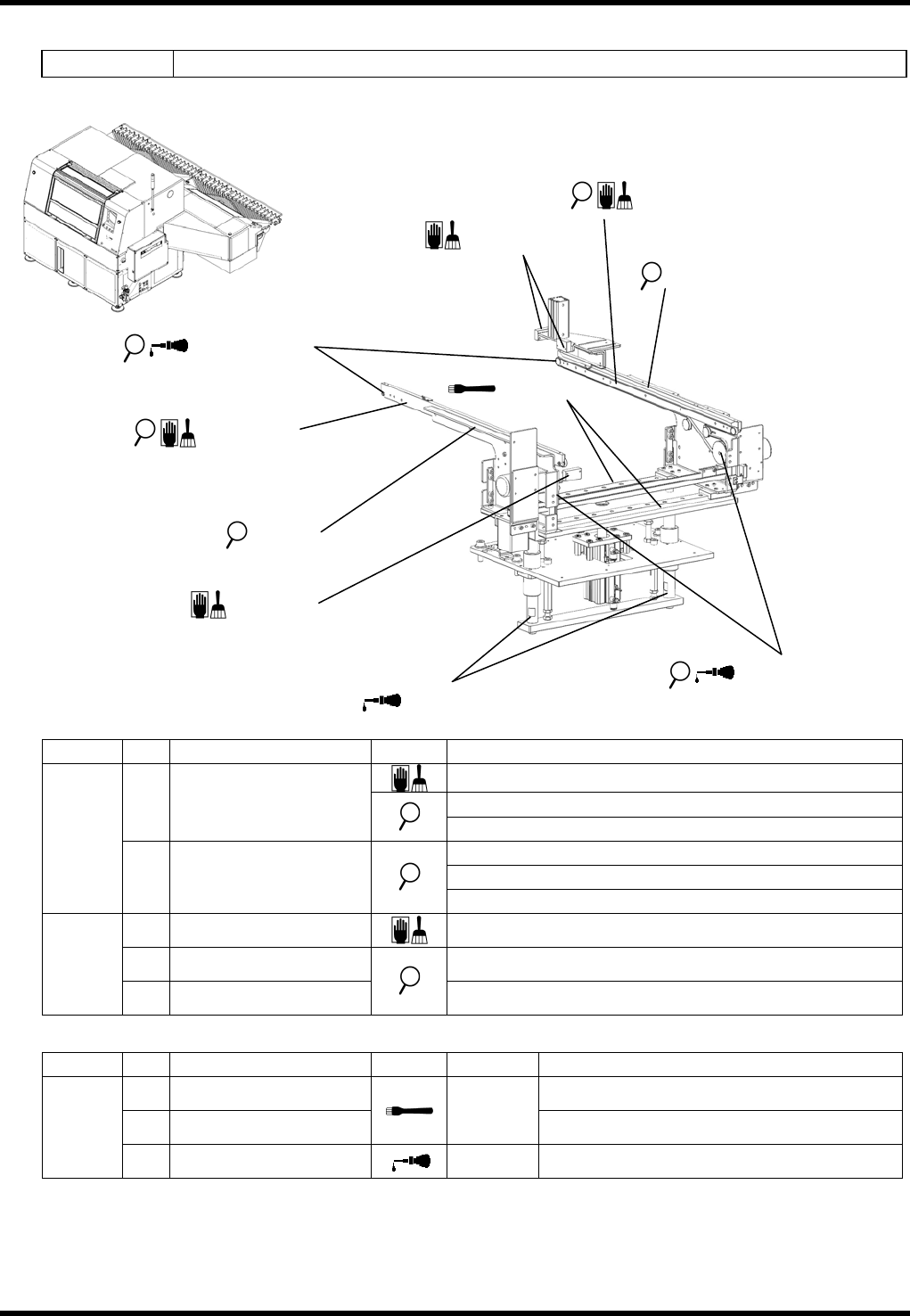 RL132 维修手册 7.3 基板搬送部 DA9MCC-Z4-000-A0 7.3-7 7.3.7 下料器 装置编号 N610128953AA 检查 周期 No. 项目 作业 详细内容 清扫油脂和灰尘。 无磨损、损伤。 a. 皮带 确保皮带张力正确调节。 宽度应比基板宽度宽出大约 0.5 ~ 1 mm 。 升降动作无异常。 每天 b. 轨道 印刷基板的流动顺畅。 c. 传感器 清扫油脂和灰尘。 d. 皮带 不打滑。 每周 e. 皮带…