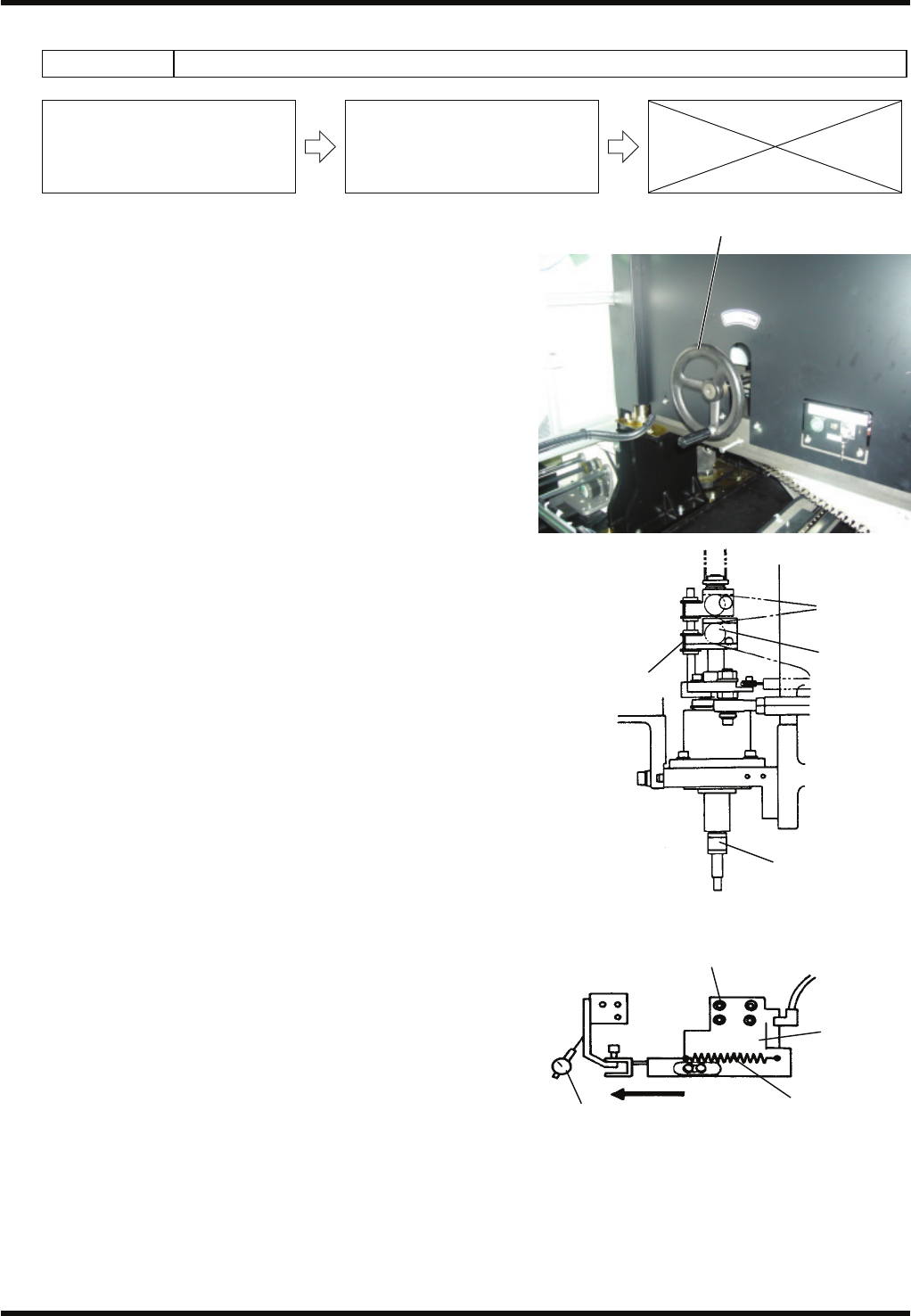 RL132 维修手册 8.2 移交夹头方面 DA9MCC-W1-N00-A0 8.2-2 8.2.2 移交夹头爪的调整 Unit No. X02G43000 / N610129 110AA 8.2.1 移交夹头的高度调整 8.2.2 移交夹头爪的调整 8.2.3 移交夹头的移送量 及中心的调整 移交夹头爪的调整 2. 1. 转动手动转盘,使循环计时器对准 48 ° 。 2. 确认移交夹头爪的固定爪与可动爪的位置是否能配 合。 如果不…
