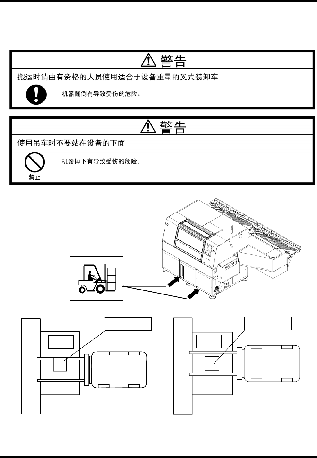 如果用户要自己搬运机器,请充分考虑本机器的重量,采用最合适的搬运设备,小心搬运。
