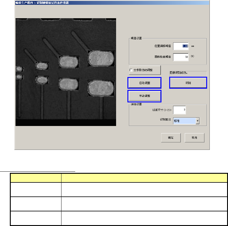 动调整出最适宜的参数。自动调整结束后,显示如下[自动调整结果]画面。识别不稳定时,会显示警
