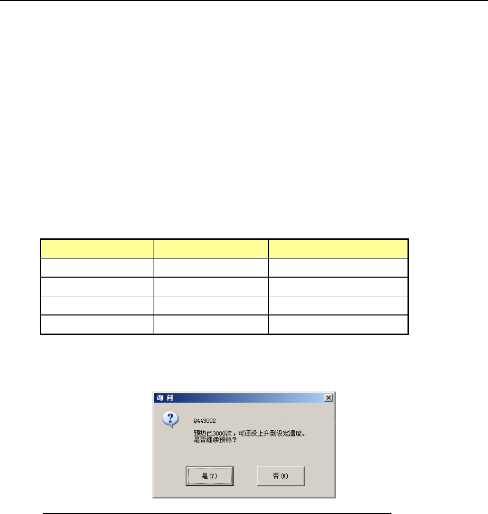 达不到所设置温度时,每进行 3000 次预热操作,会显示询问框,询问是否要持续进行预热操作。