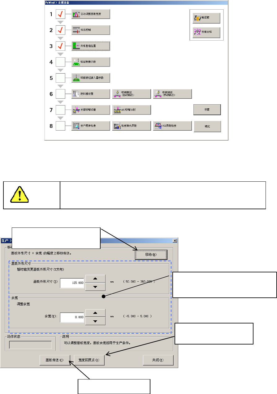 按下画面 1「自动调整基板宽度」按钮,即可显示出“自动调整基板宽度”画面。