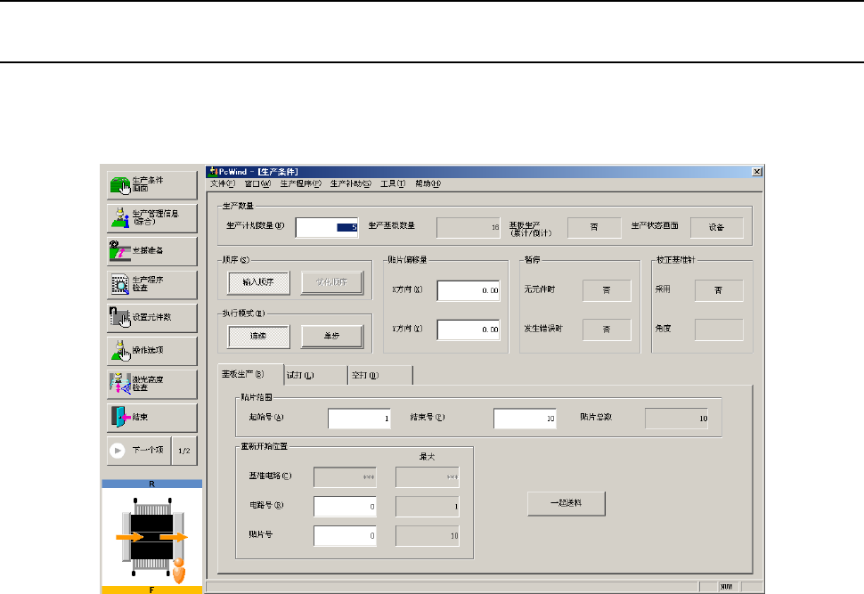 在主画面上选择[生产]-[基板生产],或功能栏的[基板生产],则会显示如下的生产条件设置画面。