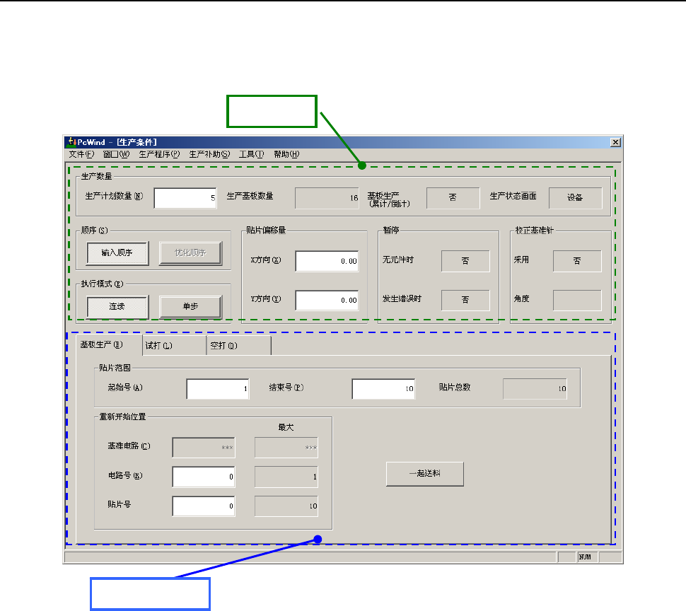 在“基板生产”、“试打”、“空打”各种生产模式上,分别设定各自的生产条件。
