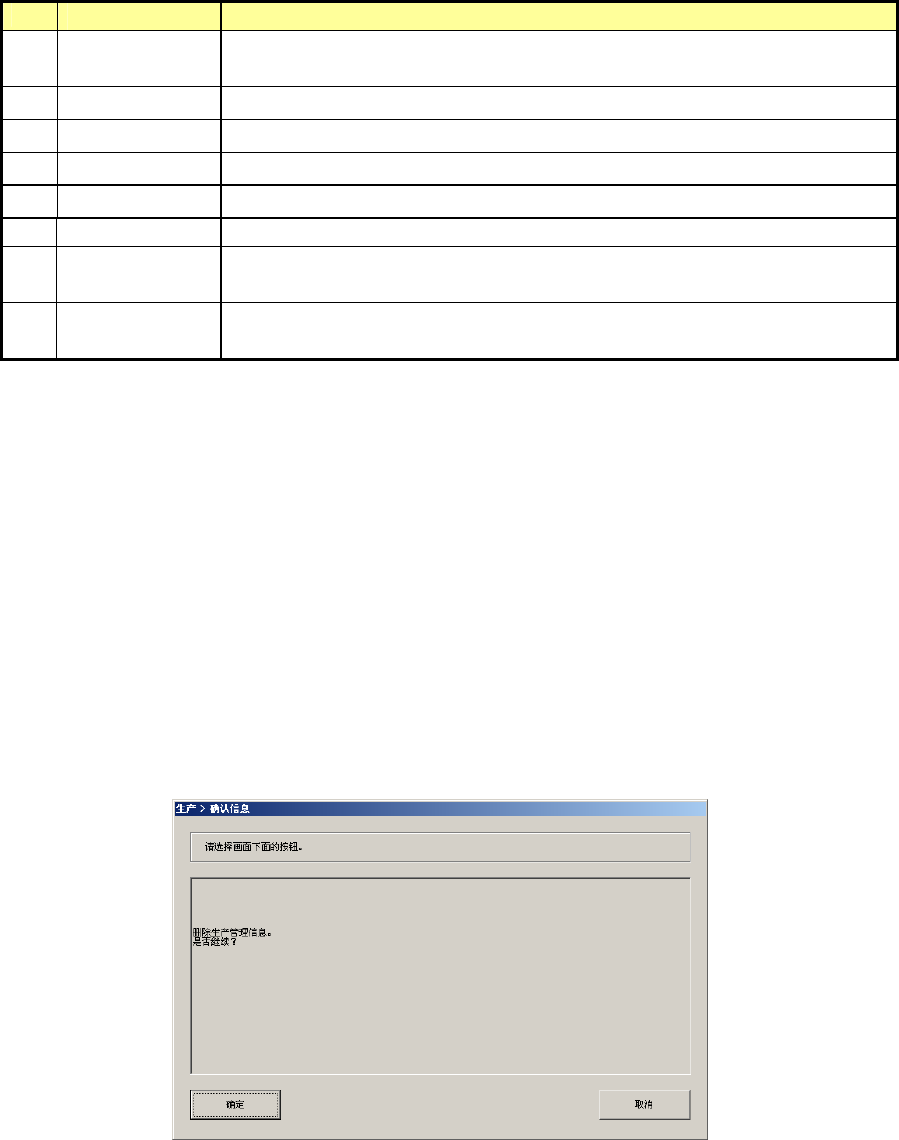 按下[取消]按钮,则不删除生产管理信息。