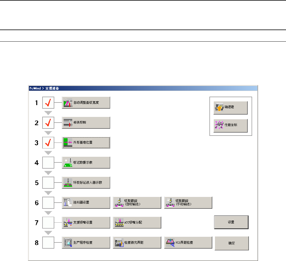 机器使用者只要按「1.基板宽度调整」~「8.生产开始前检查」项目顺序依次完成动作,即可完成