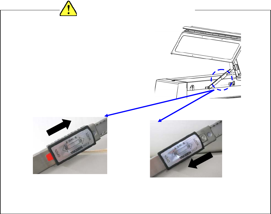 第 1 部 基本篇 第 1 章 装置概要 1-1 1 ◆ 打开安全罩时,先把罩子推上去, 再把锁杆向箭头(LOCK)方 向推,锁好。 确认上了锁之后,再放开手。 ﹡没有上好锁就松手时, 安全罩有落下来的危险。 ◆要关安全罩时,要先解开锁,再关闭。 把安全罩向上提, 再把锁杆向 OPEN 方 向推,解锁。 (请注意,解锁时要防止盖子落下来受伤。 ) ﹡不要在安全盖、手杆等处过渡增加负 荷。 LOCK(锁定)状 态 OPEN (打开)状态 …