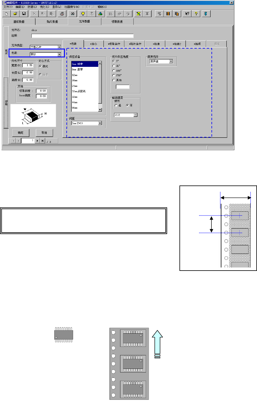 以JUKI的元件供应角度为0°,选择带状供料器上的元件包装姿势与之形成的角度。