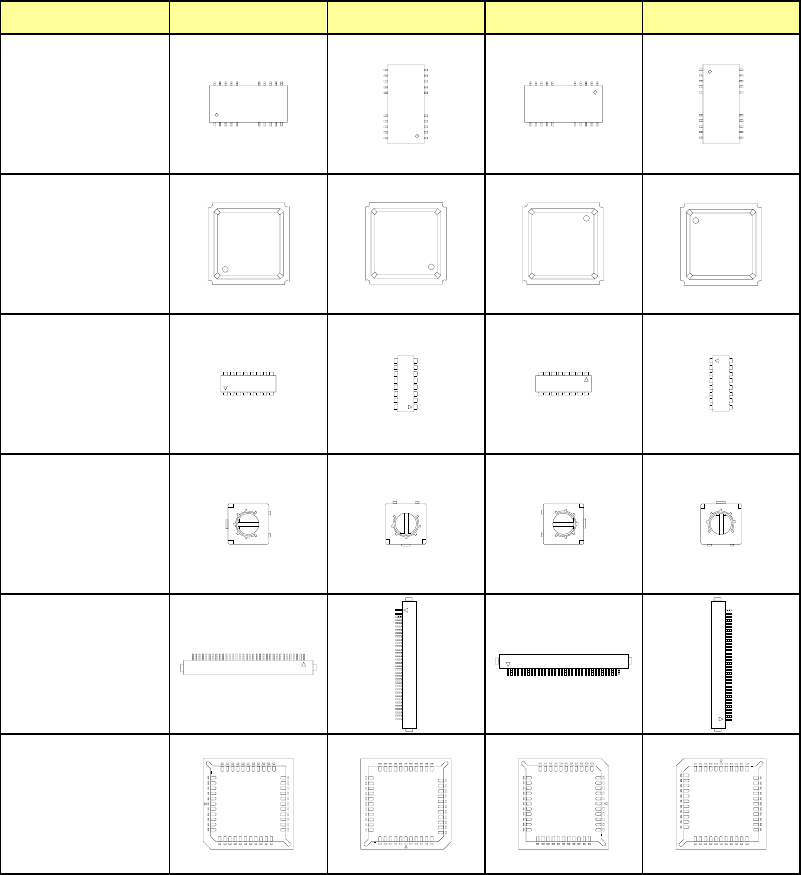 第 1 部 基本篇 第 4 章 制作生产程序 4-59 ※ JUKI 的元件供应角度定义 以下说明元件供应角度 0° 的定义及各个角度。 对于没有极性的元件,无需区别 0° 与 180° 、 90° 与 270° 。 元件种类 0 90 180 270 方形芯片 圆筒型芯片 铝电解电容器 GaAsFET SOT SOP HSOP SOJ QFP QFN QFJ(PLCC) BQFP(PQFP) TSOP-1