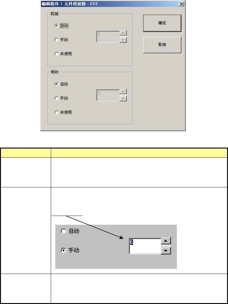 针对各种料带宽度的机械式类型和电动式类型,设置元件供应数的初始值(使用、不使用)。但
