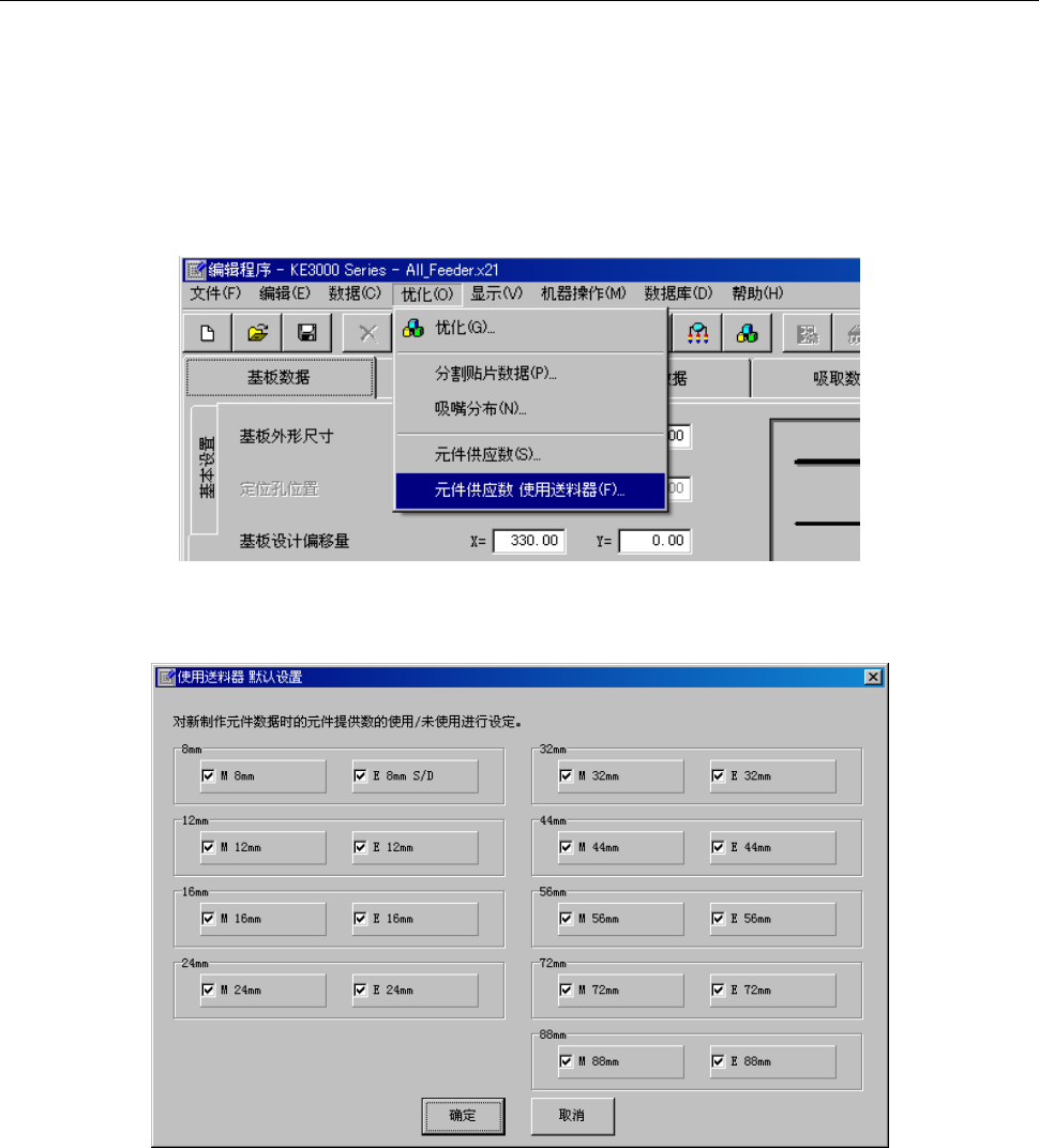 ① 请在菜单栏内点击「优化」/「元件供应数 使用供料器」。