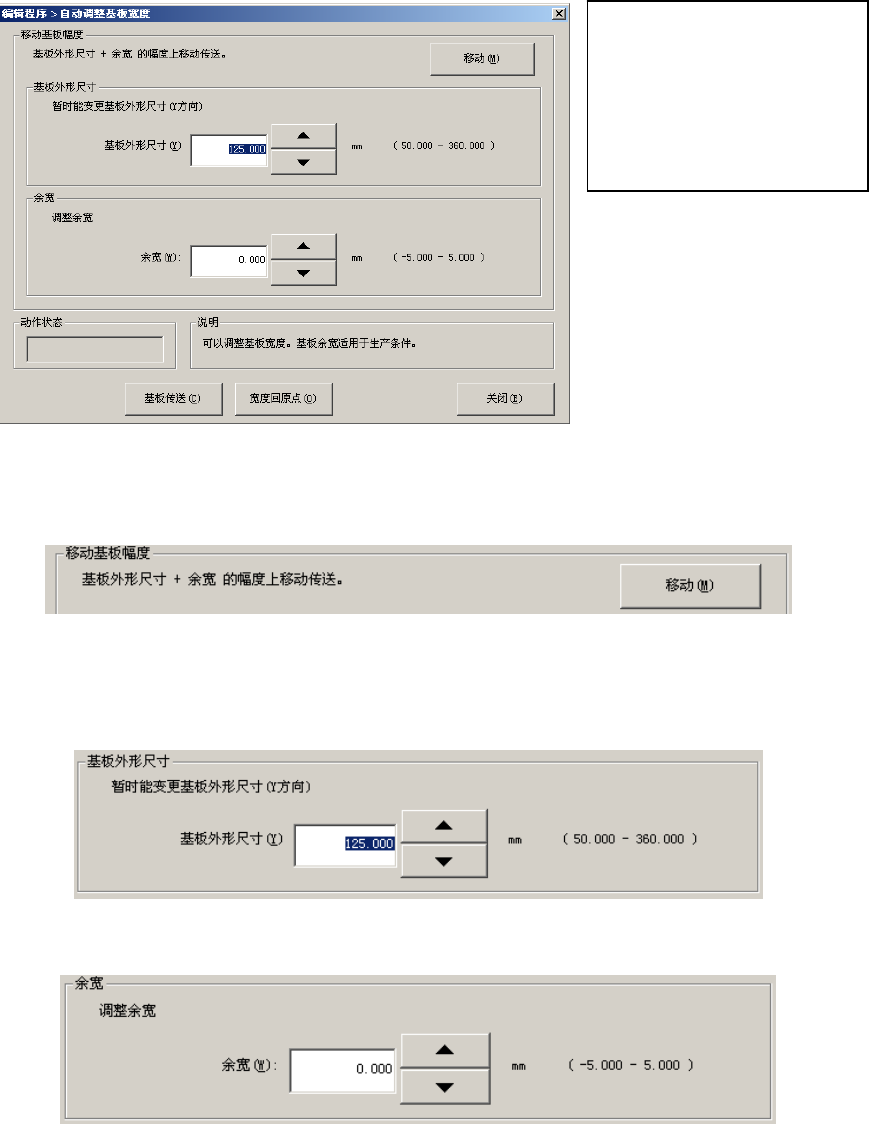 将传送宽度向基板外形尺寸+余宽的位置移动。运行时传送宽度值适用以下项目设定值。