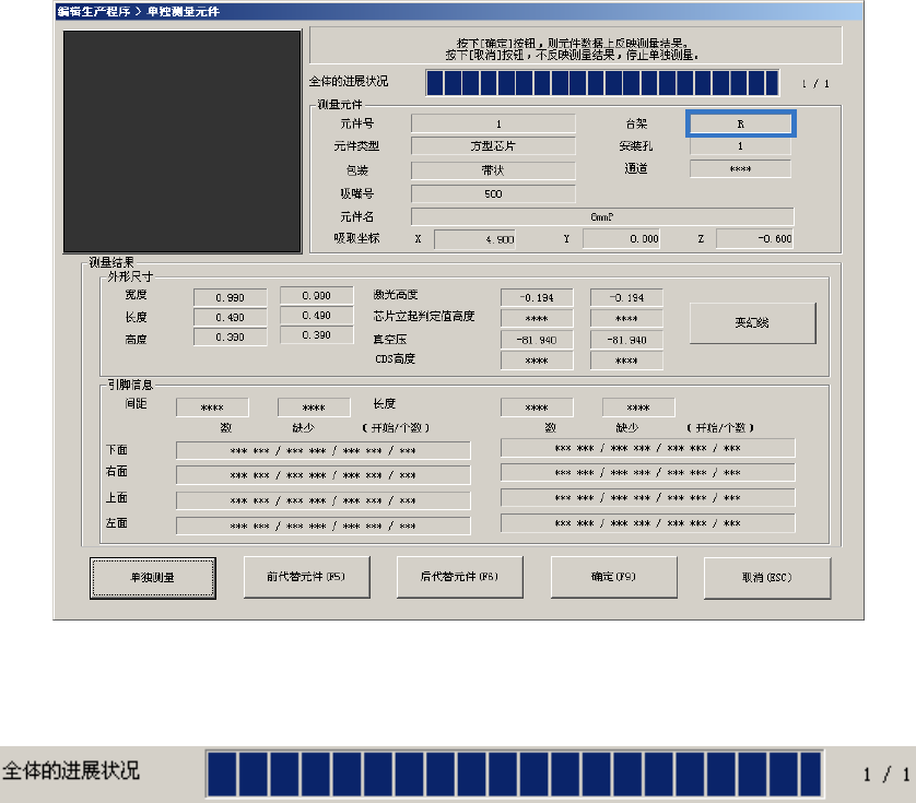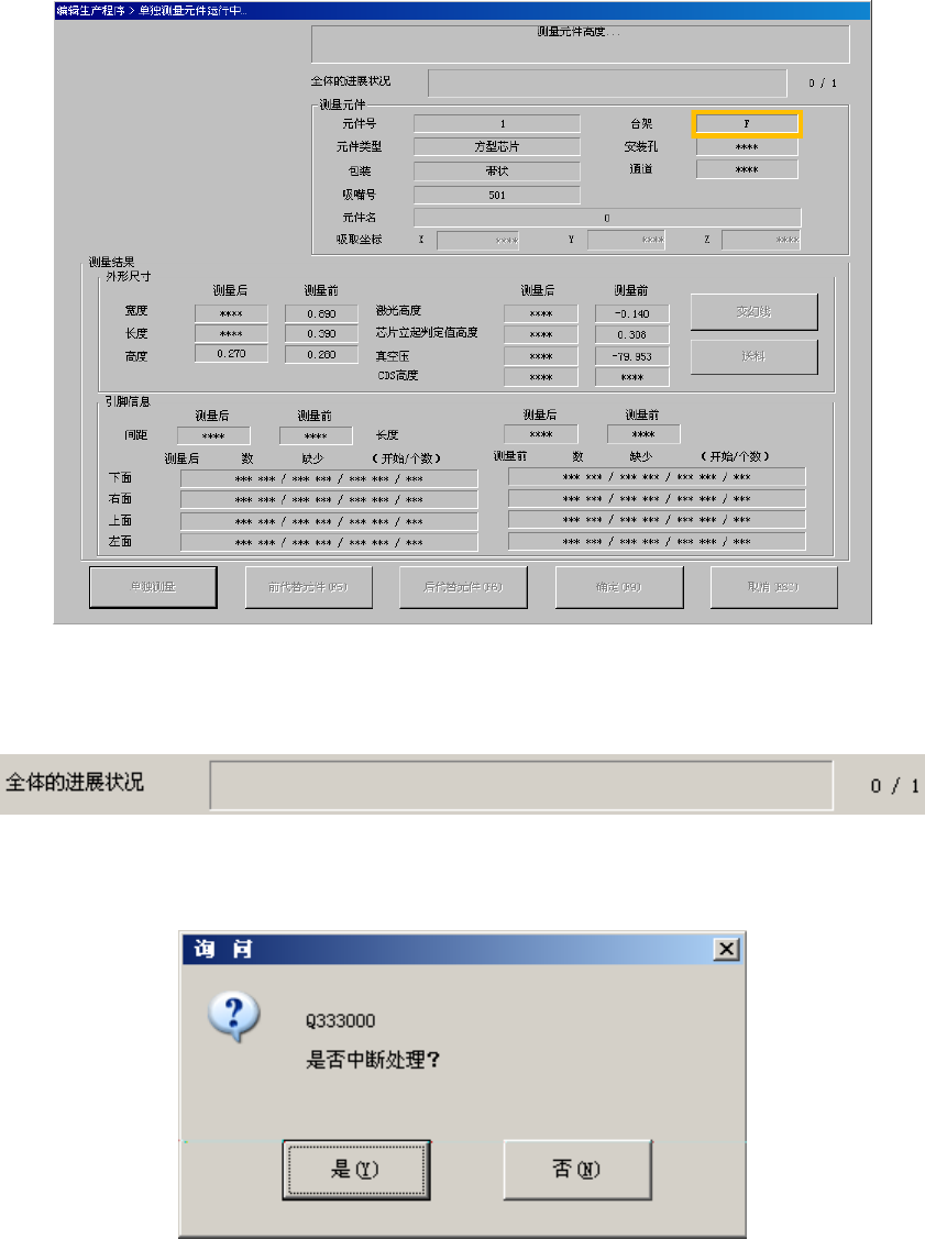 在单独测量过程中,显示如下画面。显示正在进行单独测量的元件的内容及吸取位置,并依次显