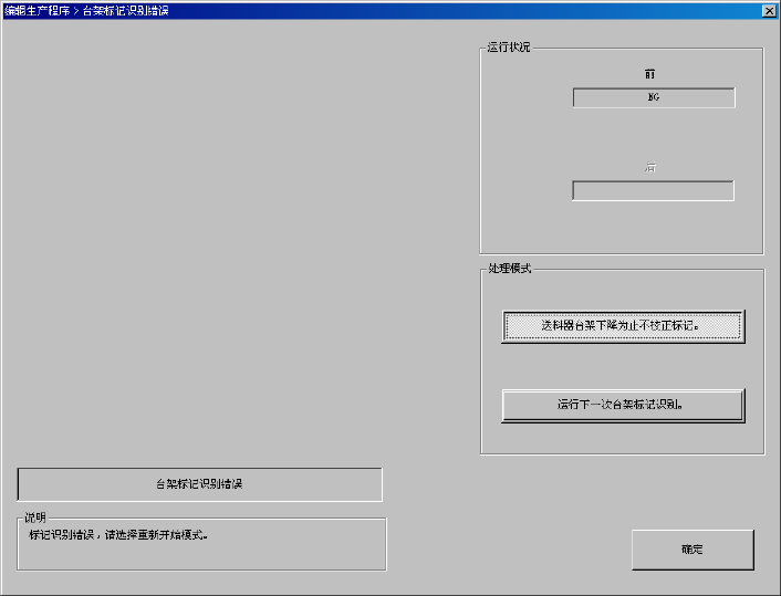当识别台架标记失败,画面的[说明]栏显示提示信息时,可以选择[处理模式]的项目。
