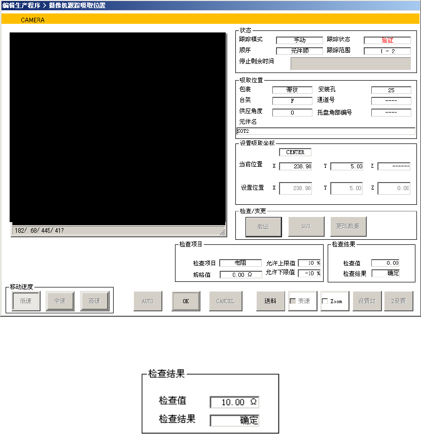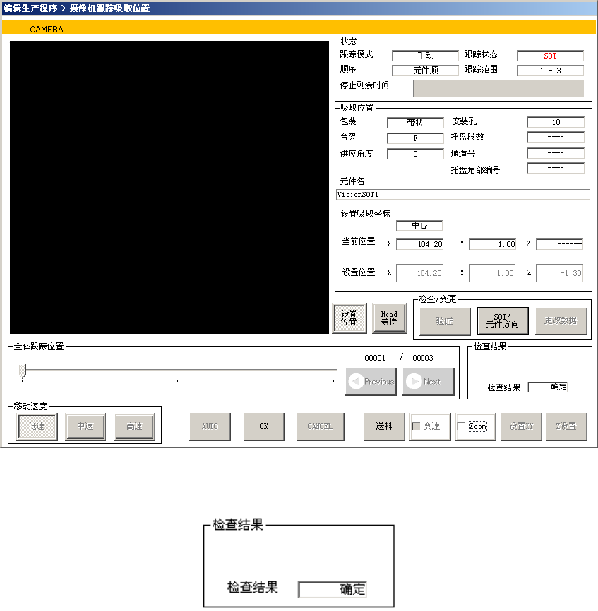4) 如果在吸取高度跟踪的条件设置中已设置了“用摄像机确认位置”,