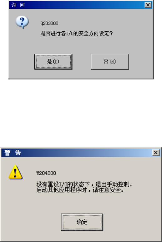 在各 I/O 安全方向设置确认提示信息中选择「否」