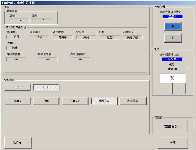 用[+],[-]按钮,选择要控制的电动供给装置的孔号。