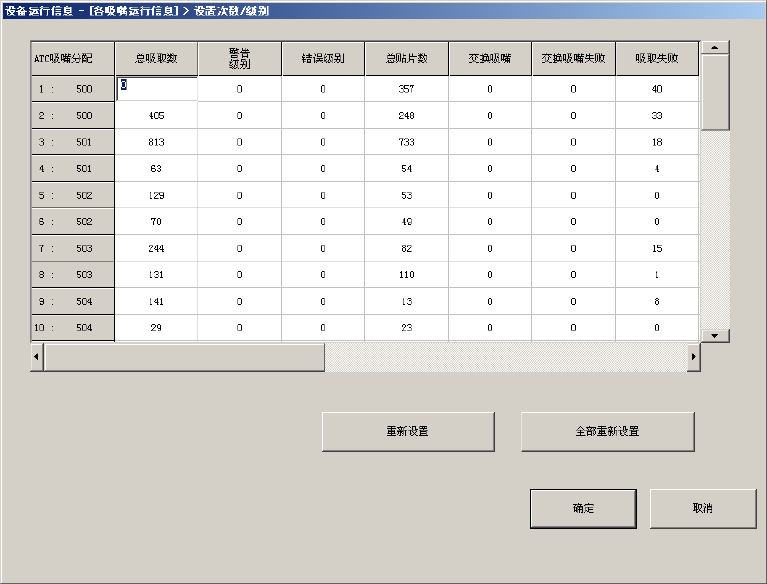 在列表中显示各吸嘴的运行次数及相关的数据。