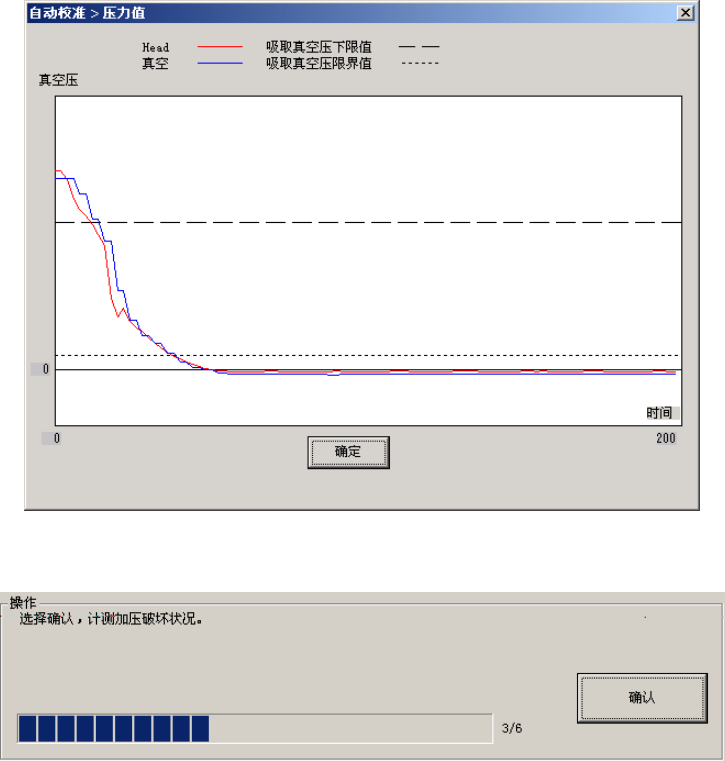 按下[确认]按钮,则设定 Head 移动到真空校准上,对加压破坏状况进行 3 次测量。