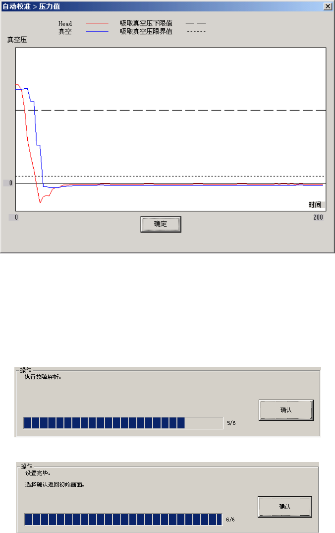 按下[确认]按钮后,设置 Head 移动到真空校准上,对真空到达状况进行 3 次测量。