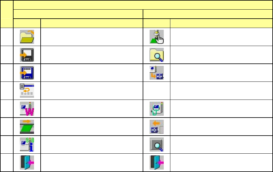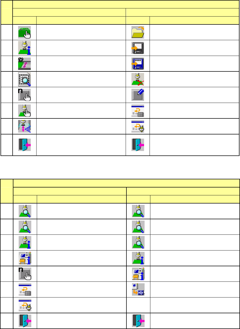 第 1 部 基本篇 第 1 章 装置概要 1-84 (2)生产的命令按钮 生产部根据情况使用 2 种类型的命令按钮。 1 )生产控制、空运行状态 2 )生产控制、生产中 No. 页 1/2 2/2 图标 名称 图标 名称 1 生产条件画面 打开 2 生产管理信息 ( 综合 ) 保存 3 支援准备 另存为 4 检查生产程序 删除继续生产文件 5 设置元件数 编辑数据 6 操作选项 重试列表(未贴片) 7 检测激光高度 重试列表(供应设备)…
