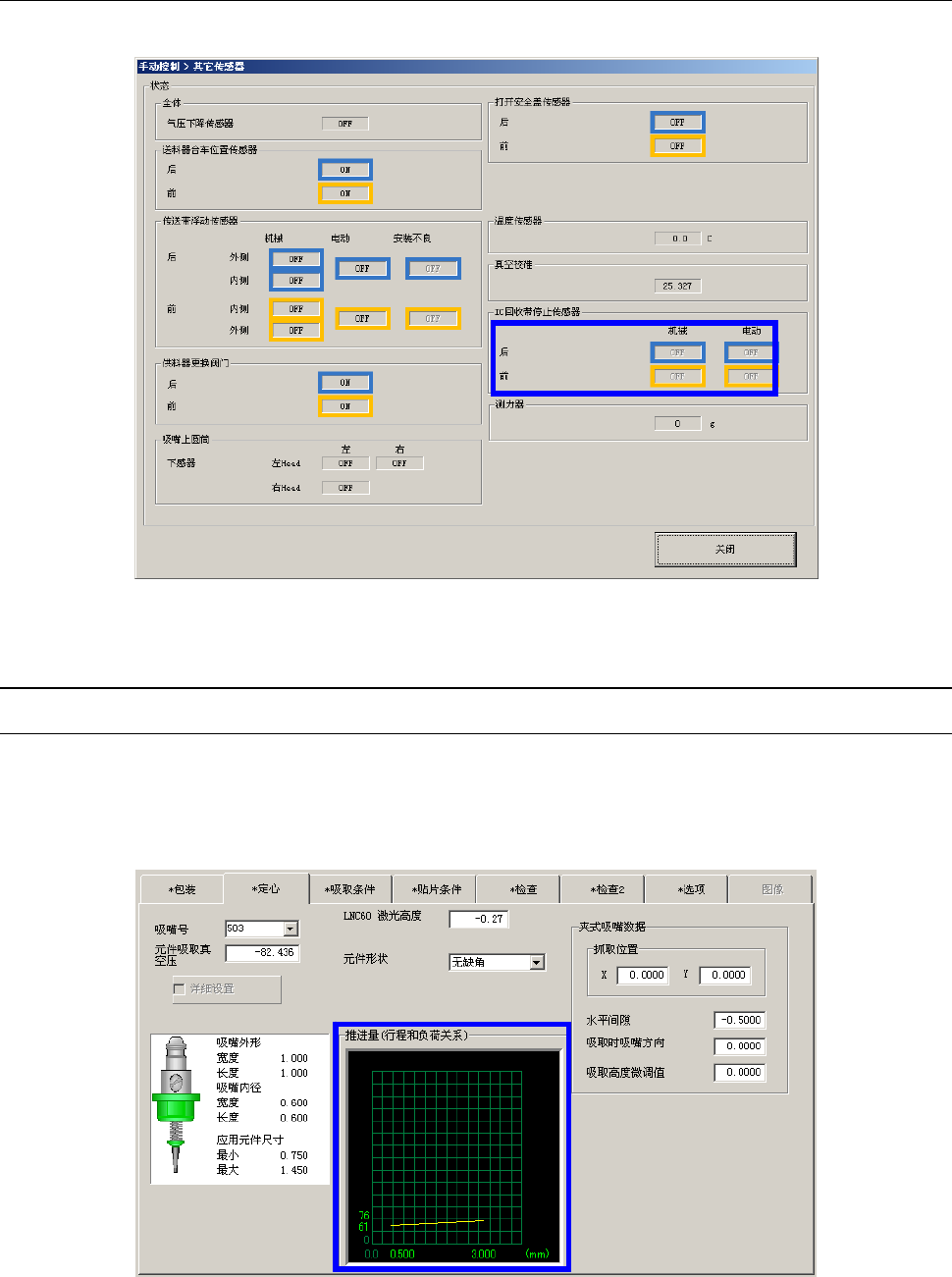 吸嘴编号 检测推进量 (mm) 检测阈值 (%)