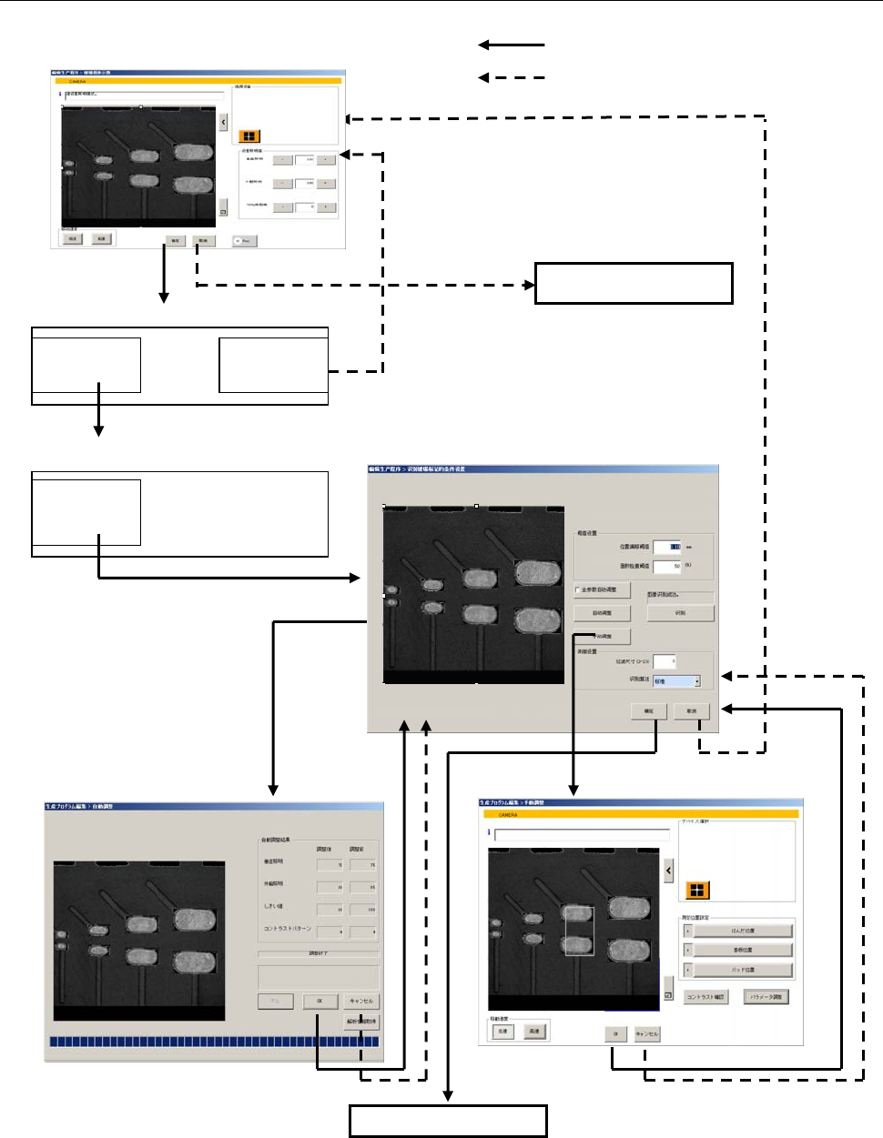 选中[全参数自动调整]进行自动调整时,照明、阈值、对比度图案会一边变动,一边进行全部图案的组合