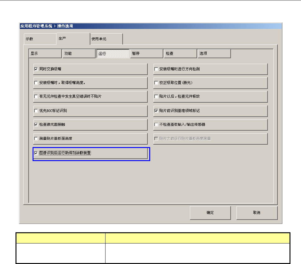 以操作选项的“生产(运行)”指定生产时助焊剂涂敷装置的动作时机。