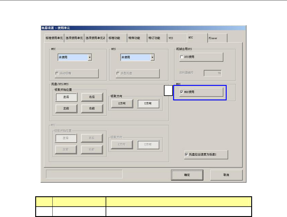 第2部 功能详解篇 第1 3章 选项 组件 13-189 13-25-2-1 使用单元 从机器设置选择「设置组」-「使用单元」-「 MTC 」 。 No 项目 内容 ① MDS 设置 ・ 使用 不使用。 使用单元中选择了后侧电动台架、后侧 IC 回收带、后侧台架助焊剂喷涂的选购项时, 「 MDS 」不 能设置。并且, MTC / MTS / DTS 与 MDS 不能同时连接。 ①
