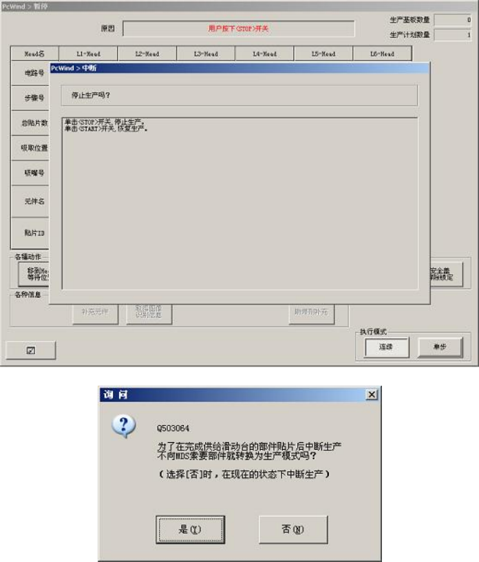 在此状态下重新开始生产,则 MDS 处无新元件要求,实施吸取、贴片动作。