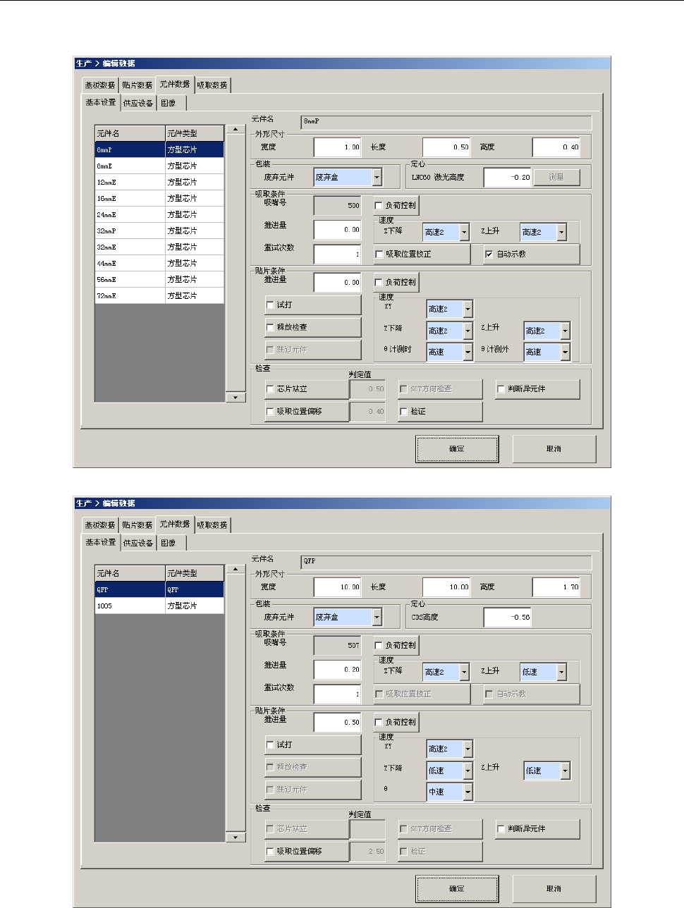 第 1 部 基本篇 第 2 章 生产 2-88 2-11-2-3 元件数据 选择画面上部的「元件数据」选项卡。 · 激光识别元件时 · 图像识别元件时