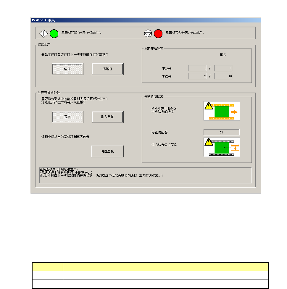 开始继续生产前,传送通道上有基板时,即显示基板重夹对话框。