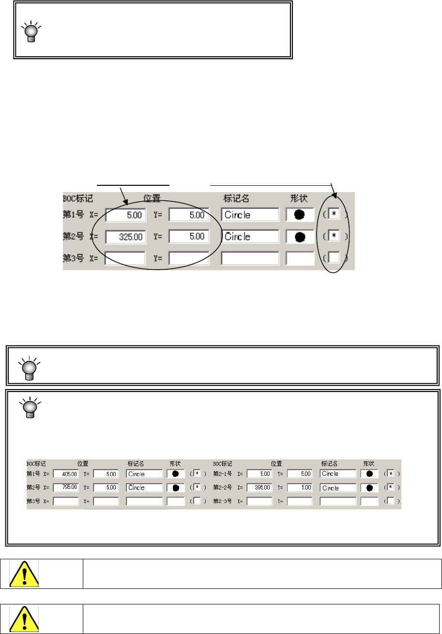 输入从基板位置基准或电路原点到各BOC标记的中心位置的尺寸。
