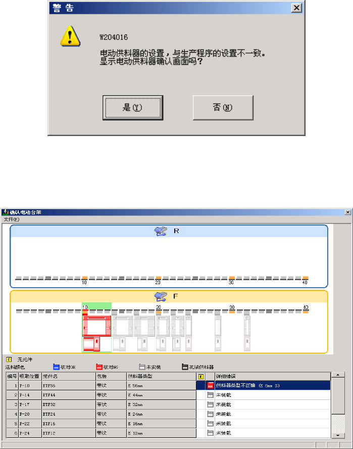 使用电动供料器时,要追加电动供料器一致性检查,检查生产程序与电动供料器之间没有矛盾。