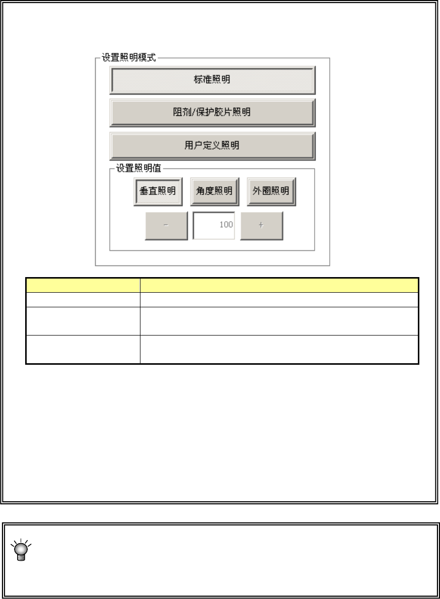 ※选择用户定义照明模式时,一般设置在50~200之间。设置50 以下时,