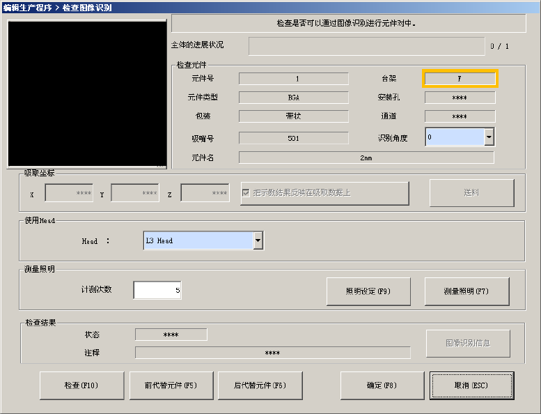 从菜单栏中选择[机器操作]-[检查]-[图像识别检查]后,显示如下画面。