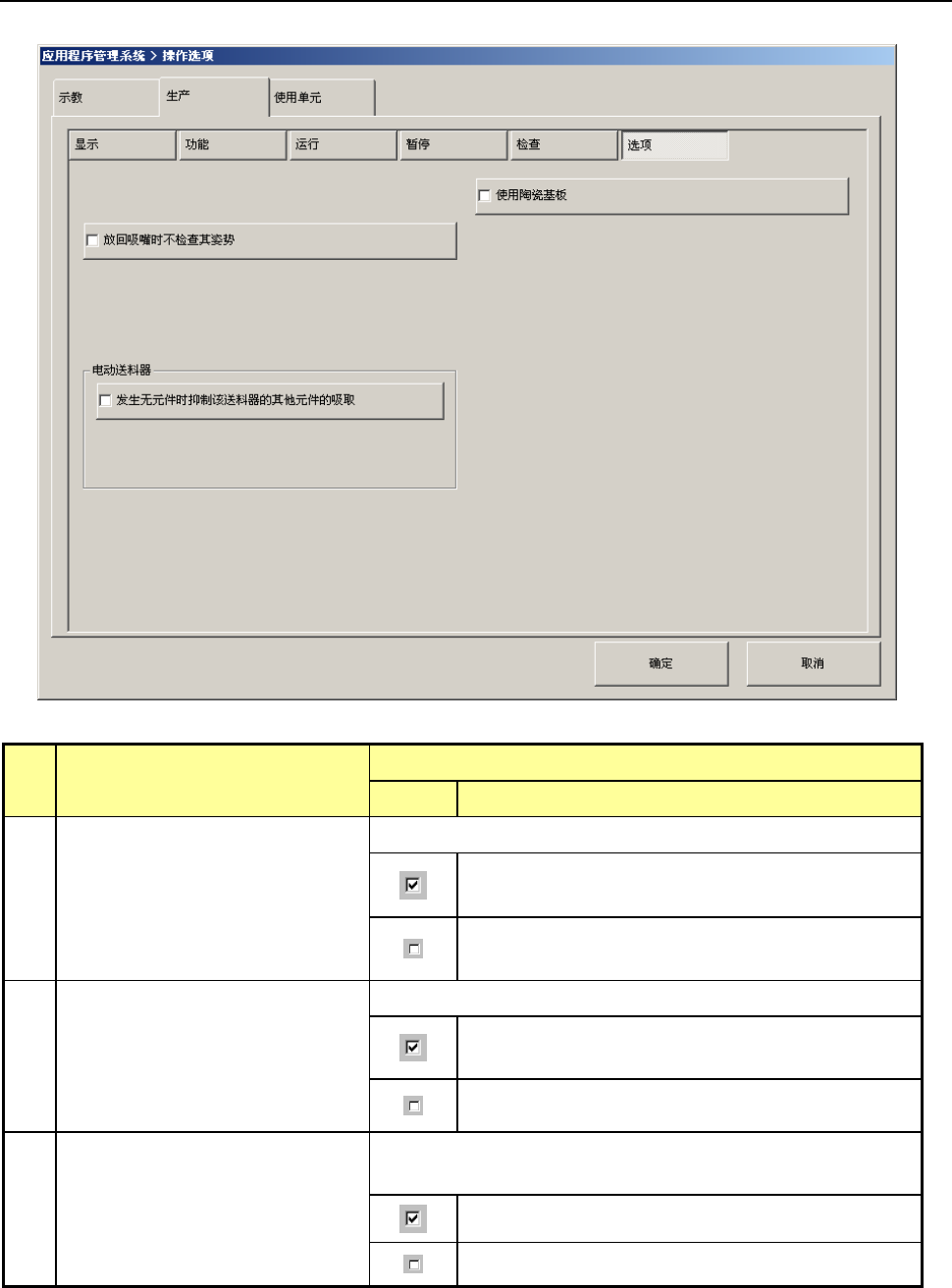按下[检查]按钮时,显示“生产检查选项设置画面”。