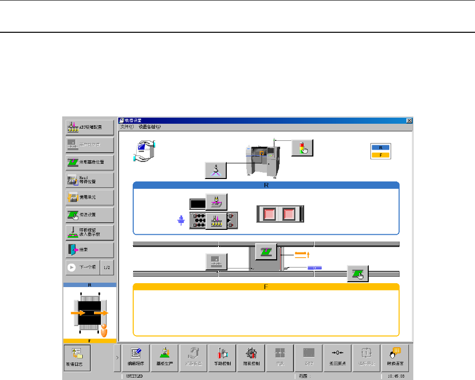 机器设置的初始画面,左侧显示工具栏,右侧显示构成图。在工具栏里,注册有设置组常用的功