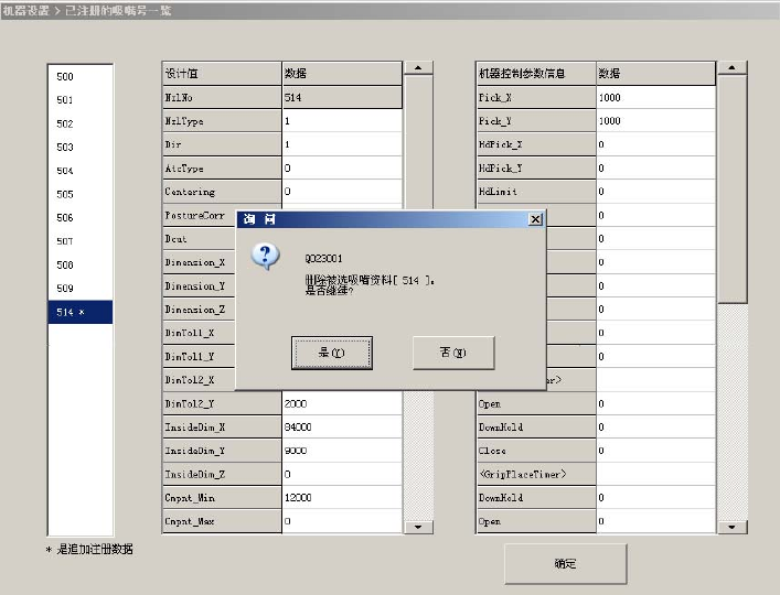 选择“是”后,该吸嘴的数据被覆盖更新。