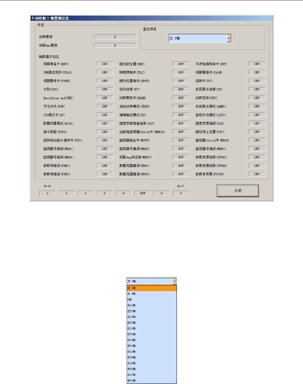 显示警报号码、及各种状态位的 ON/OFF 状态。