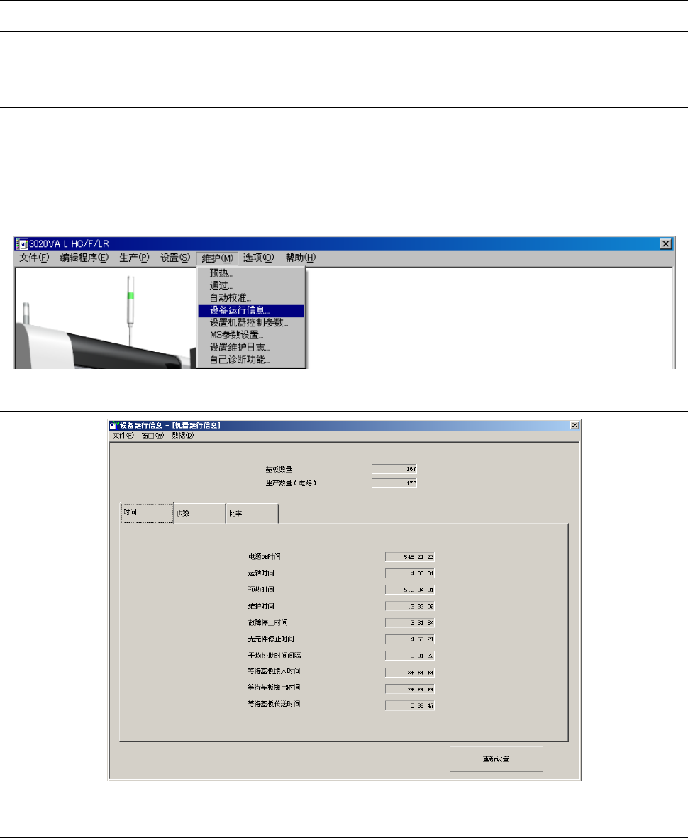 显示机器的运行时间(基板生产时间的累计等)、吸嘴拆装次数等设备固有的运行信息。