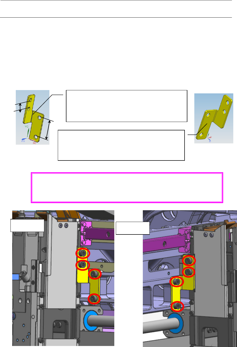 ① 请使用下图红色圆圈所示的螺孔,以贴装头固定用金属板和 M4×10 六角头螺栓把左右各