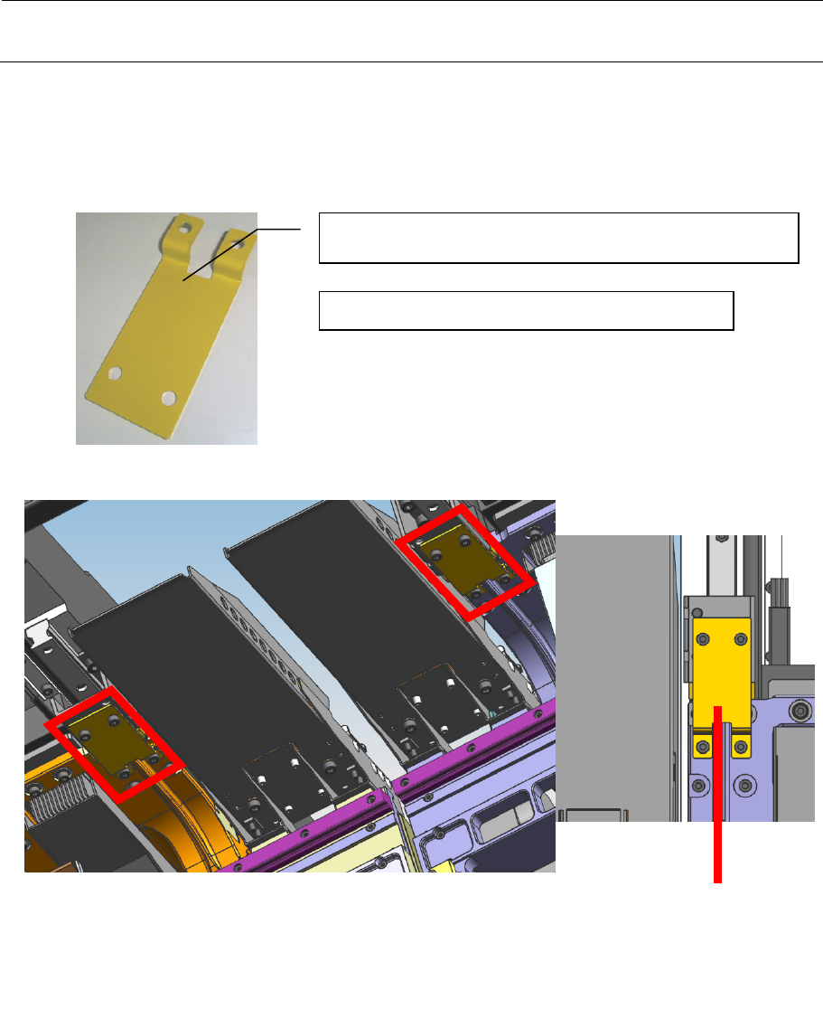 ① 请将左右的 X 框架抵住装置前侧的 Y 限动器,将下图所示的部分用 SHIPING CLAMP (Y)