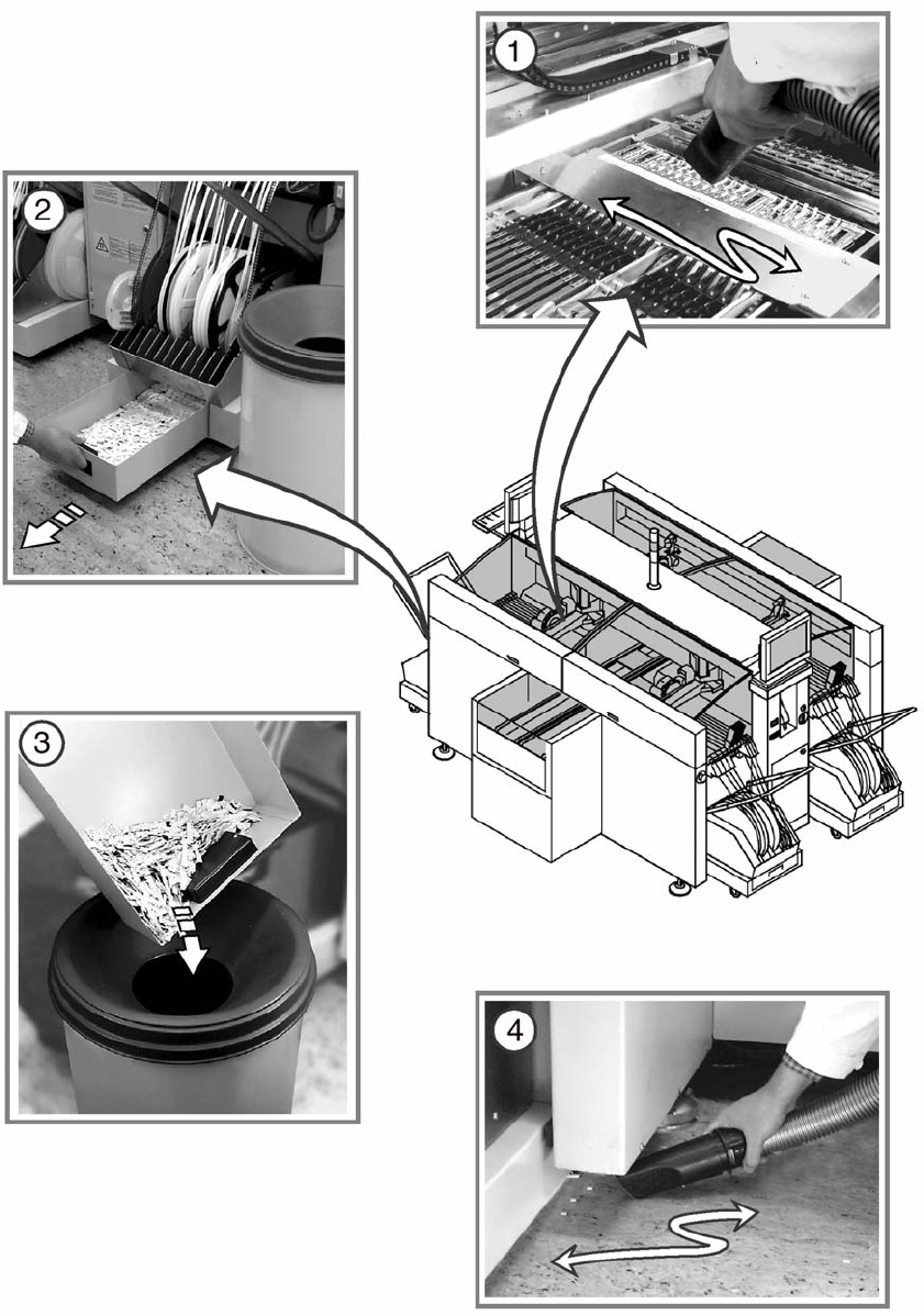② 用吸尘器清洁弃料盒四周,并更换弃料盒。
