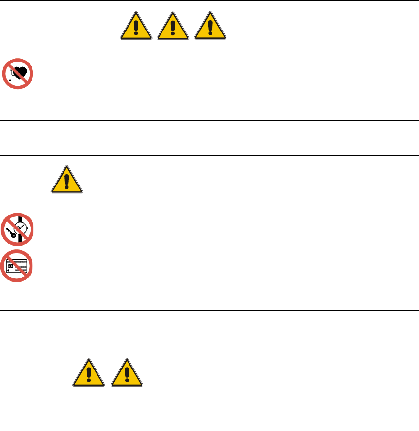 ○ y 轴的永久磁铁具有极大的磁场。佩戴心脏起搏器的人员不得在永久磁铁附近停留。