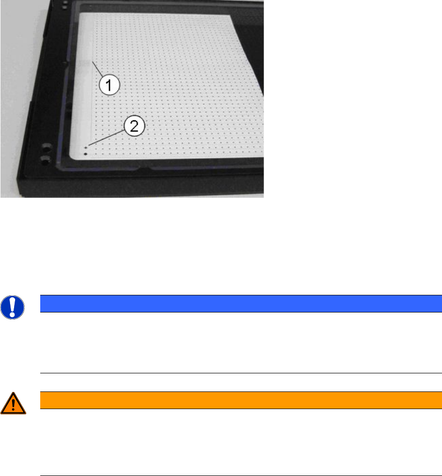 ► Achten Sie darauf, dass die globalen Passmarken (2) frei von der Folie bleiben.