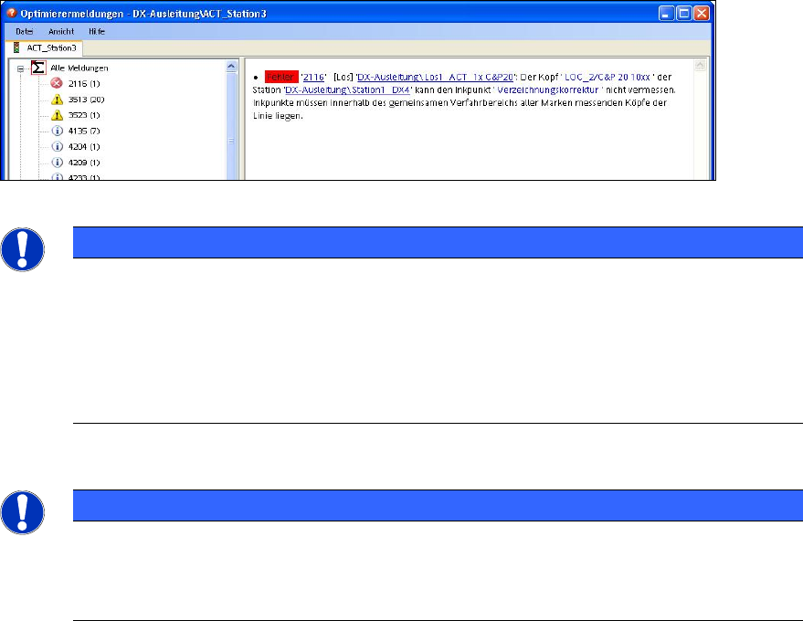 Abbildung 4-2: Beispiel Fehlermeldung wegen Nicht-Erreichbarkeit der Inkpunkte